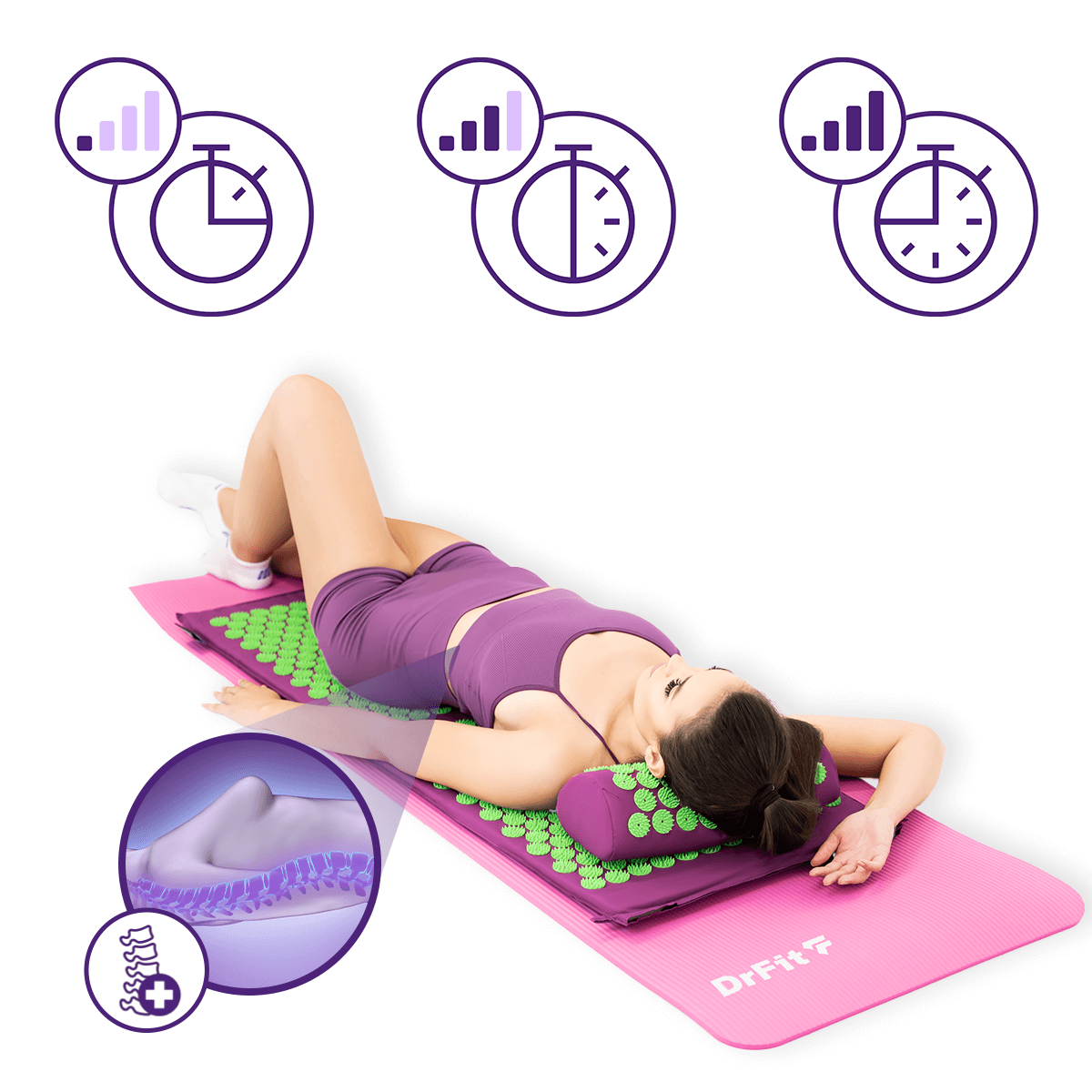 - Mata do akupresury DrFit, wraz z dołączoną poduszką stanowią kompleksowy zestaw do praktykowania akupresury. Mata posiada specjalnie zaprojektowane kolce, które skutecznie stymulują punkty akupresyjne na całym ciele, łagodząc ból i napięcie mięśni.
