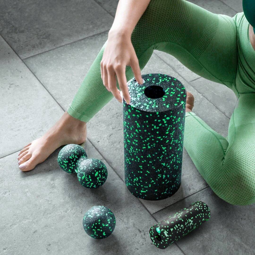 DrFit piankowy roller do masażu i rehabilitacji zestaw 4 elementy zielone kropki