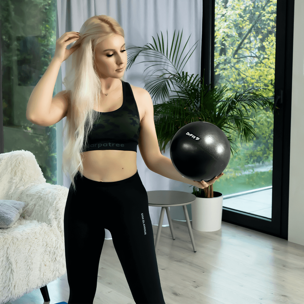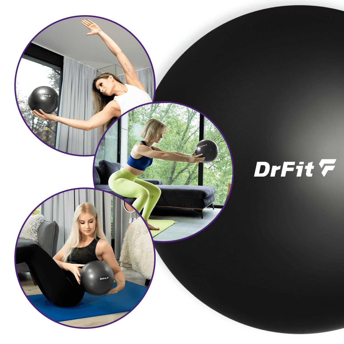 Treningi z wykorzystaniem małej piłki gimnastycznej DrFit angażują całe ciało, poprawiając kondycję, siłę i jędrność mięśni ramion, grzbietu, brzucha, ud i pośladków.