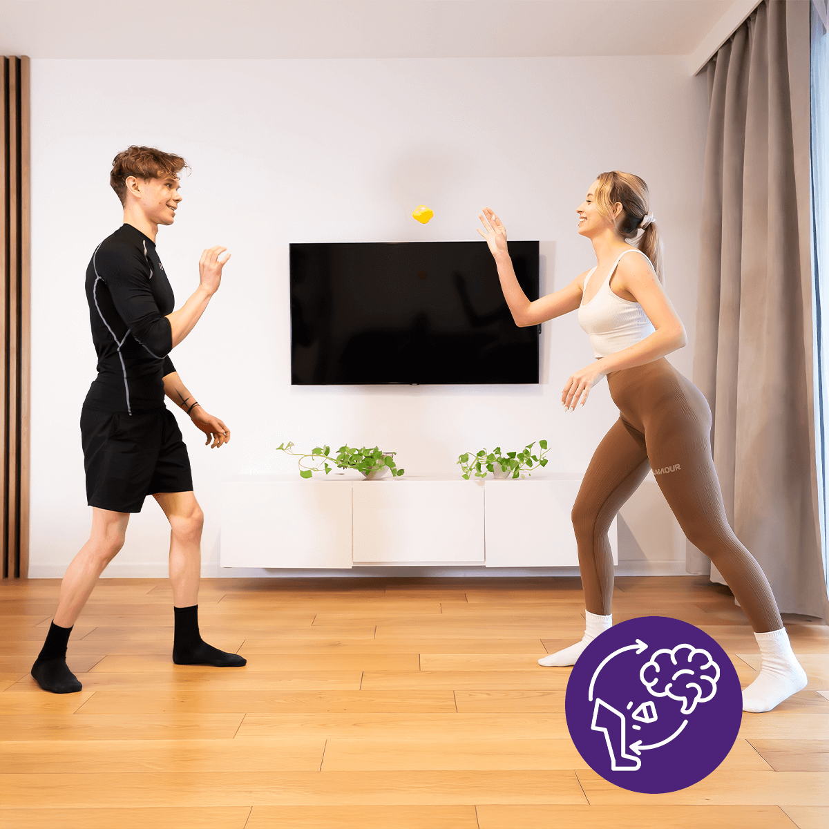 Ćwicz samodzielnie, rzucając o ścianę, lub wykorzystaj ją w kreatywnej zabawie, także w większej grupie osób.